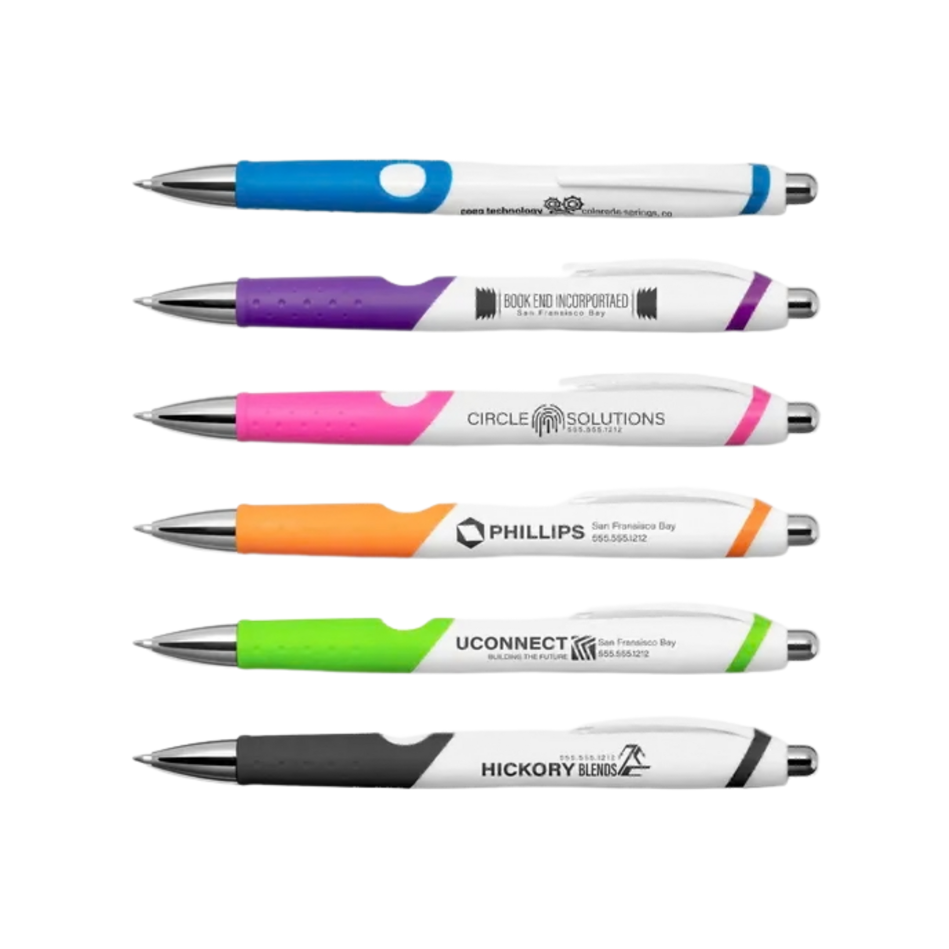 Offer a pop of colour and a big impression with this classic pen. Eye-catching details include coloured trim, chrome accents, and of course your personalised ad message, which will stand out in black against the bright, white barrel. Customers appreciate the comfortable, textured rubber grip and quick-drying ballpoint ink.